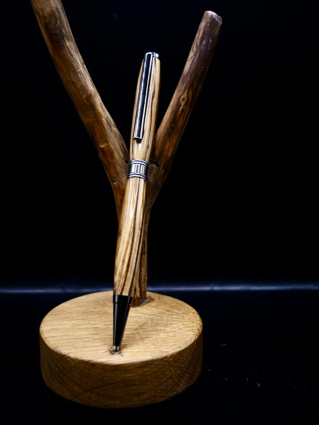 Stylo bille style Dandy, Découvrez un stylo d’exception, façonné à la main dans le prestigieux bois d’olivier de Bethléem, reconnu pour ses veines spectaculaires et sa symbolique millénaire. Chaque pièce révèle des motifs naturels uniques, mêlant chaleur dorée et reflets sombres, pour un rendu visuel incomparable.