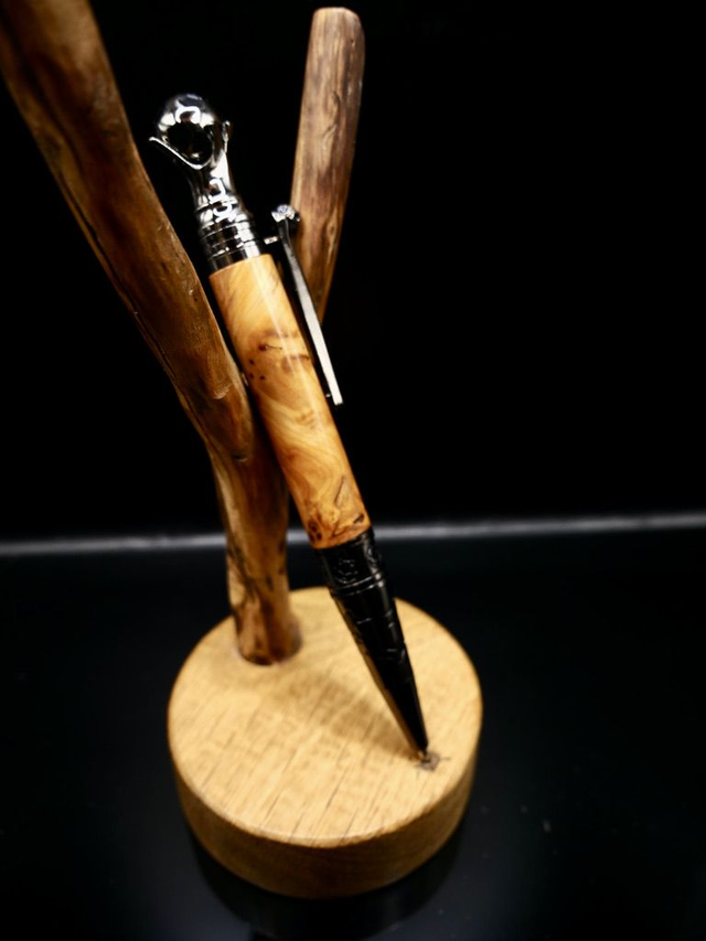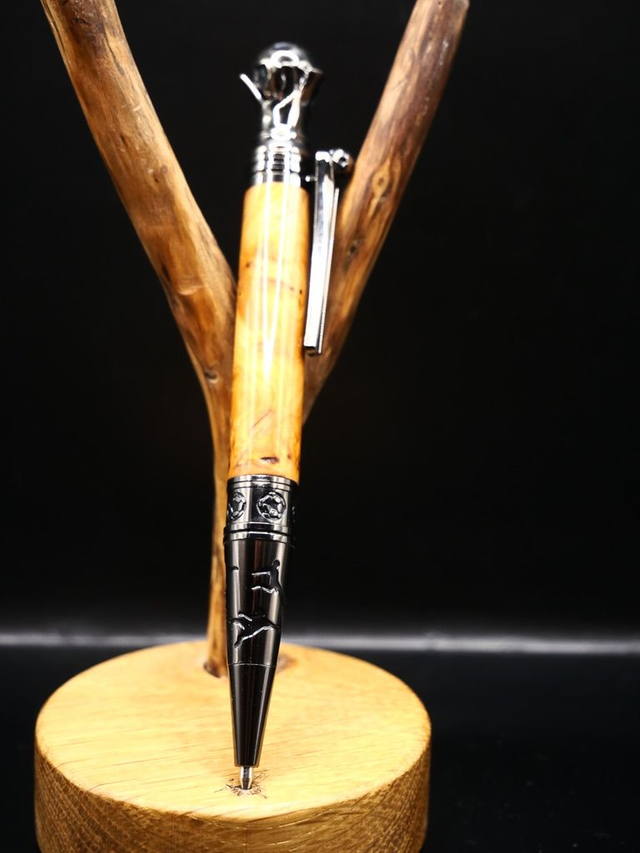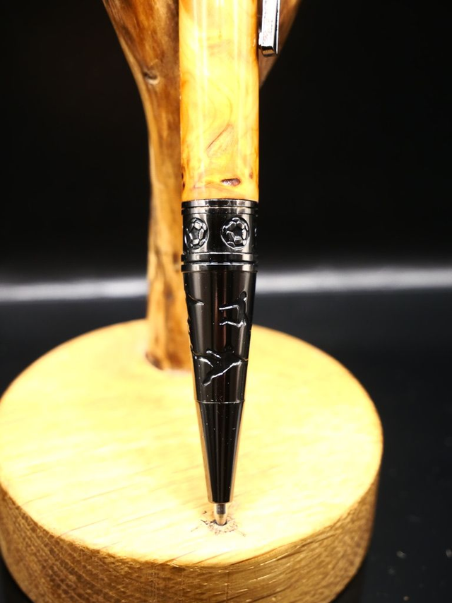 Ce stylo unique sur le thème football monté sur de la loupe d'If, Quand la passion du football rencontre l’artisanat d’excellence. , est bien plus qu’un instrument d’écriture : c’est un symbole de caractère, de passion et de victoire. La loupe d’if, bois noble aux veinages tourmentés et chaleureux, confère à chaque stylo une identité unique, tandis que les détails métalliques inspirés de l’univers du football apportent puissance et originalité.