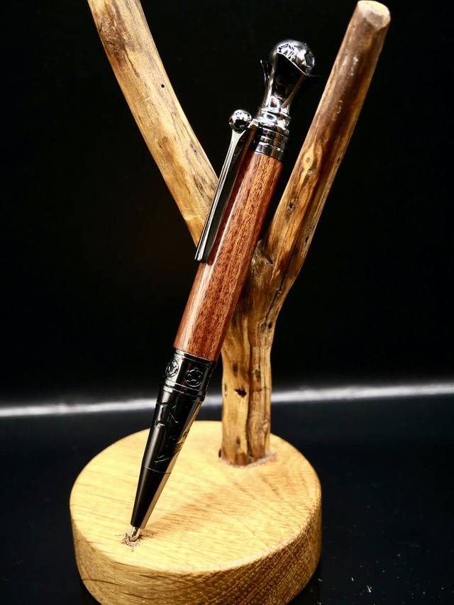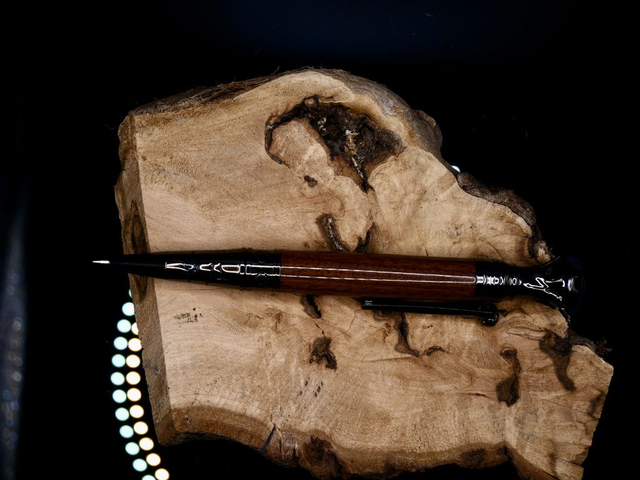 Ce stylo unique sur le thème football monté sur du Palissandre Santos Quand la passion du football rencontre l’artisanat d’excellence. est bien plus qu’un instrument d’écriture : c’est un symbole de caractère, de passion et de victoire. Chaque stylo a une identité unique, tandis que les détails métalliques inspirés de l’univers du football apportent puissance et originalité.