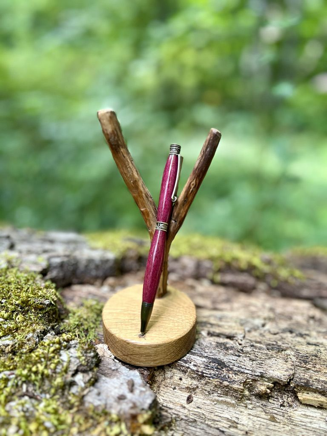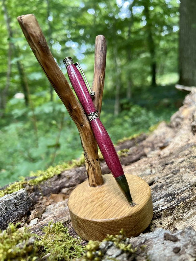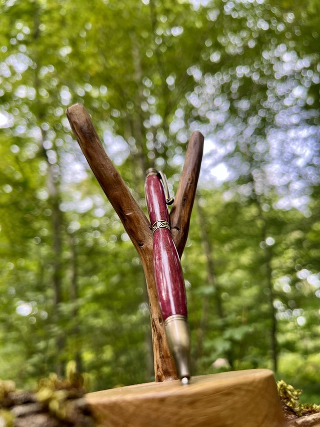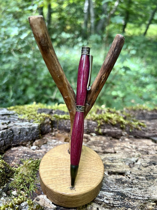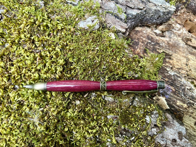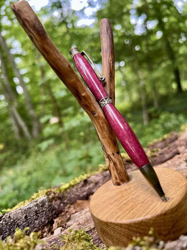 Stylo bille style cyclotron bronze est un stylo unique, monté sur de l'amarante. Donnez à vos écrits une touche d’originalité et de prestige avec ce stylo artisanal en bois d’amarante. Réputé pour sa teinte naturellement pourpre et sa durabilité exceptionnelle, ce bois rare venu d’Amérique du Sud fait de chaque pièce une véritable œuvre d’art.