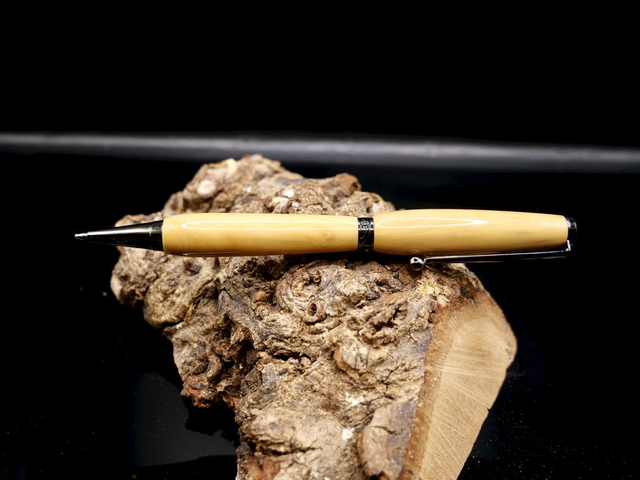 Stylo bille style art déco gun métal. Laissez-vous séduire par ce stylo d’exception, entièrement façonné à la main dans du vieux buis, un bois noble réputé pour sa finesse, sa densité et son toucher incomparable. Sa teinte douce et chaleureuse s’associe parfaitement aux finitions gun metal look à la fois raffiné et moderne.