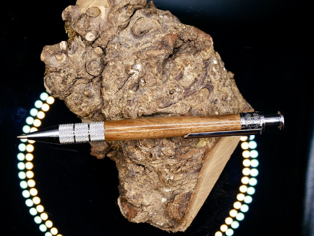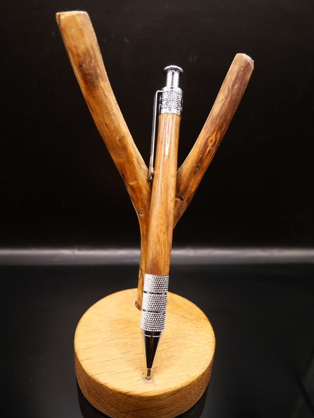 Stylo bille ciselé avec poussoir monté sur du Noyer. Son bois noble apporte une sensation incomparable. Sont mécanisme garantit une écriture souple et précise. Que ce soit pour signer des documents importants, noter vos idées ou offrir un cadeau d’exception, ce stylo incarne le goût du beau et du durable.